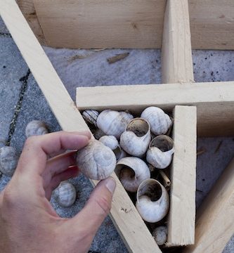 - Oben in die Dachkammer kommen gesammelte leere Schneckenhäuser.