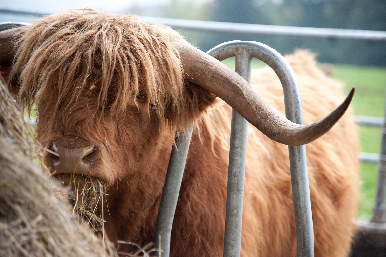 Das Tier, das heute geschlachtet werden soll, ist eine 11-jährige Hochland-Kuh. Die Form ihrer Hörner erinnerte Hugo Lucian an den Lenker seines Motorrads, als er sie vor Jahren als eines seiner ersten Rinder angeschafft hat. Sie trägt seither den Namen Harley.