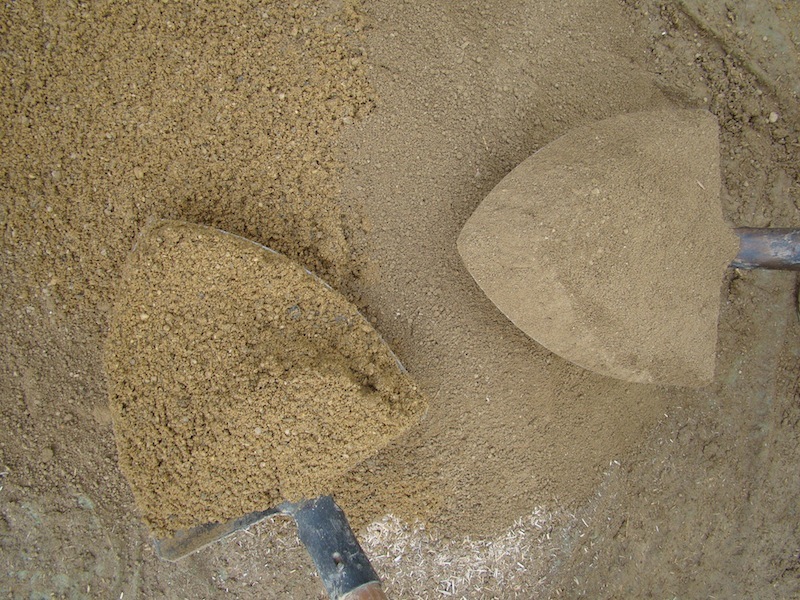 Die einfachste Möglichkeit, zu Lehm zu kommen, ist, ihn selbst auszugraben. Man findet ihn fast überall. Im erdfeuchten Zustand kann er sofort eingesetzt werden. Fetter, also tonreicher Lehm, muss mit Sand »abgemagert« werden. Manche Lehmofenbauer mischen auch Stroh oder Heu dazu. Die richtige Mischung und damit die Konsistenz ist vor allem eine Frage der Erfahrung. Als Methoden eignen sich die urgeschichtlichen: Mit-den-Füßen-Treten und Mit-den-Händen-Kneten.