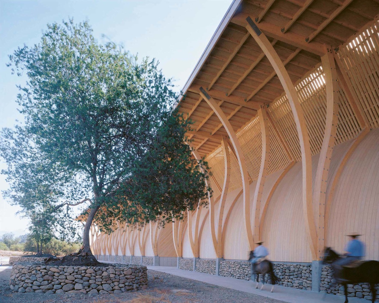 - Weingut Perez Crus © José Cruz Ovalle: In drei Baukörpern des Weingut Pérez Cruz in Chile läuft der komplette Herstellungsprozess des Weins von der Vergärung über die Lagerung in Fässern bis hin zur Abfüllung in Flaschen unter einem gemeinsamen Dach ab.
