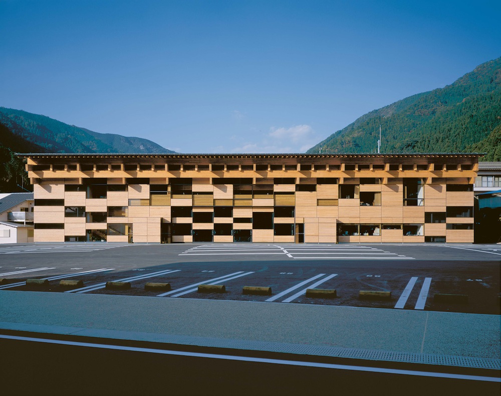 - Yusuhara Town Hall © Kengo Kuma & Associates: Trotz der einzigartigen Holzbautradition ist moderner Holzbau in Japan – abgesehen vom Fertighausbau – eher selten zu finden. Die Yusuhara Town Hall zeigt neben hoher Architekturqualität, dass das Holzbauwissen noch in großem Maß vorhanden ist.