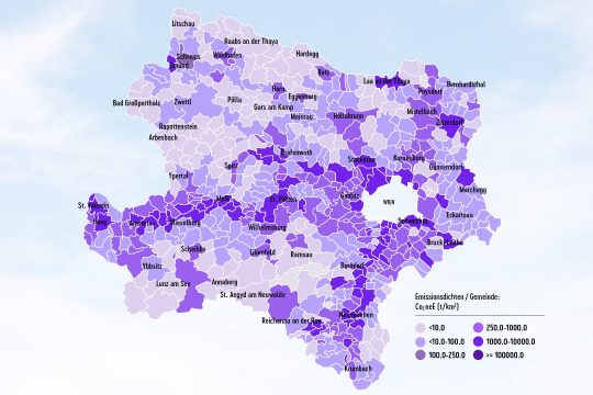 Der Emissionskataster zeigt die Emissionsmengen je nach Gemeinde. Umwelttechniker Manfred Brandstätter vom Amt der Landesregierung erklärt, was die Karte zeigt.