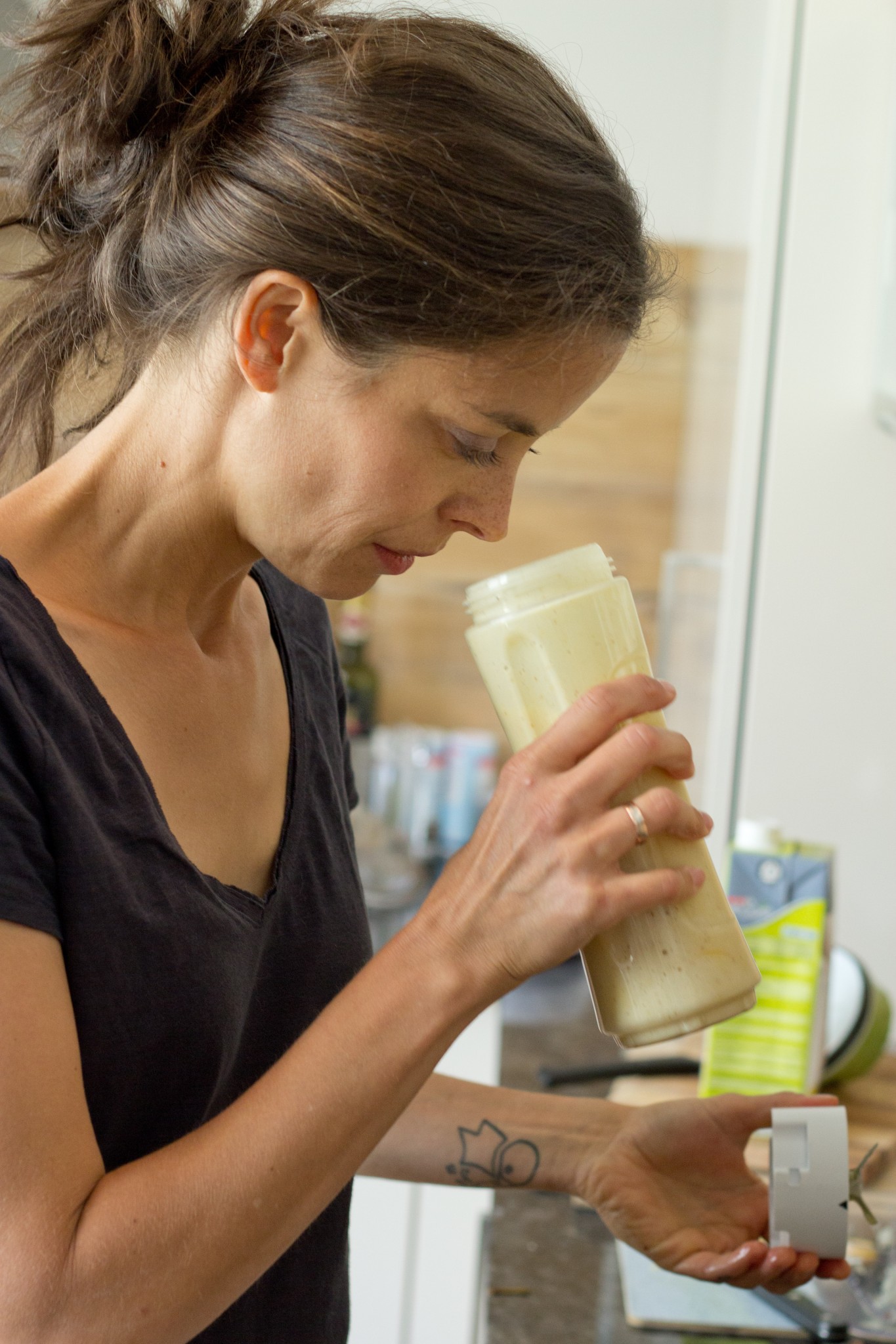 Und dann gibt es ja noch die beiden Mitbewohner: »Also die Cathi isst Fleisch, und unser Hund isst Fleisch. Das kommt mir auch immer komisch vor, wenn ich da meine Sojasachen einkaufen geh und dann kommen die Fleischbrocken für den Hund … Wir haben Lotti aus dem Tierheim und die isst uns halt nix anderes. Ich hätte sie, glaub ich, nicht vegan ernährt, aber ich hab schon am Anfang mehr probiert – mit Gemüse und Flocken und so. Aber das rührt sie nicht an. Wie gesagt: Mir ist schon klar, dass das nicht ganz stringent ist … Und die Cathi ist halt das ganze Gegenteil von mir: Ich war recht früh Vegetarierin, und sie ist damit aufgewachsen, dass es jeden Tag Fleisch gibt. Und wenn sie kein Fleisch isst, schlägt ihr das auf’s Gemüt. Ich vermiss es halt überhaupt nicht.«