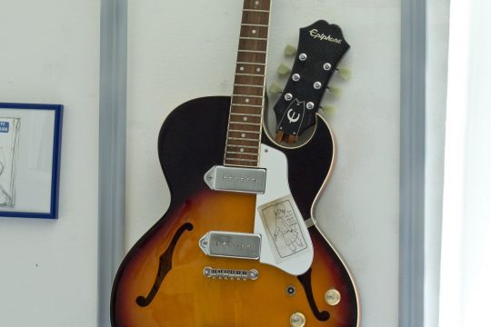 Clara hat uns zu sich in ihre Wohnung in einem 50er-Jahre-Bau geladen. Dort, im 20. Wiener Gemeindebezirk, lebt sie schon, seit sie 1997 zum Studieren nach Wien gekommen ist – seit einigen Jahren nun gemeinsam mit Ehefrau Cathi Priemer und Hund Lotti. Ursprünglich waren hier ihre Großeltern zuhause. Neben Musikinstrumenten und -abspielgeräten stechen in der Drei-Zimmer-Wohnung deshalb auch sehr schöne alte Möbel ins Auge. »Die sind noch von der Oma«, erklärt Clara.
