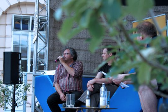Prominent besetzte Talks wie jener mit Roland Düringer zum Thema „Sinn und Unsinn des Vegetarismus“ sorgten trotz vereinzelter Regenschauer am Freitag für angeregte Diskussionen. Im Talk mit Felix Hnat von der Veganen Gesellschaft Österreich, Kochbuchautorin und Journalistin Katharina Seiser, Bio-Bauer und Mangalitza-Schweinezüchter Christoph Wiesner und Andreas Schindler (Radio FM4) stellte Roland Düringer fest: „Es geht nicht nur darum wie wir Fleisch essen, sondern vor allem welches und wieviel.“ Foodbloggerin Lisa Vockenhuber meinte auf Twitter: „Kenne übrigens sonst kaum Veranstaltungen, wo sich Leute im Freien i.d. Regen stellen, um einer Podiumsdiskussion zuzuhören.“