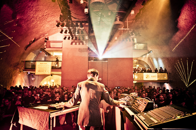 Im Musikprogramm des Freitags bedurfte es keiner Anführer, denn Felix Kubin und James Pants waren eher schüchtern, aber dafür umso retro-futuristisch überzeugender mit ihren Synthisizer-Drum-Geschichten, die sie erzählten und mich und viele andere in andere Sphären beamten. Nicht viel später erreichte Daedelus Ähnliches, wenn gleich er eher im Dub-Step-Modus beheimatet war und uns Tänzer an seinem Lauchpad wie ein Science Fiction General in Steampunk-Anzug dirigierte. Dann irgendwann später ein Pendeln zu dem interessantesten Fleck in Graz in dem Musik stattfinden kann: das Dungeon in der Uhrturmkasematte. Mit den Visual-Installationen von Urzeit-Tieren von OchoReSotto ausstaffiert wirkte dieser Ort wie aus einem wundersamen Film oder einem Traum, der vielleicht zu einem Albtraum ausarten könnte.