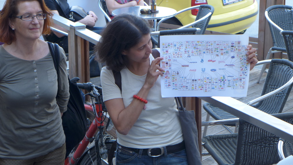 Wenn wir konsumieren, könnte das mit Rücksicht auf Umwelt- und Sozialverträglichkeit bei Kauf und Entsorgung und auch maßvoll ablaufen. Warum und wozu? Auch darüber werden die TeilnehmerInnen des Spaziergangs – im Vorbeigehen – informiert. Die oft komplexen Zusammenhänge zwischen unserem Konsum- und Entsorgungsverhalten einerseits und sozial und ökologisch oft untragbaren Produktionsbedingungen andererseits werden anhand einzelner Beispiele greifbar gemacht.