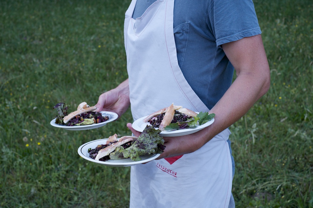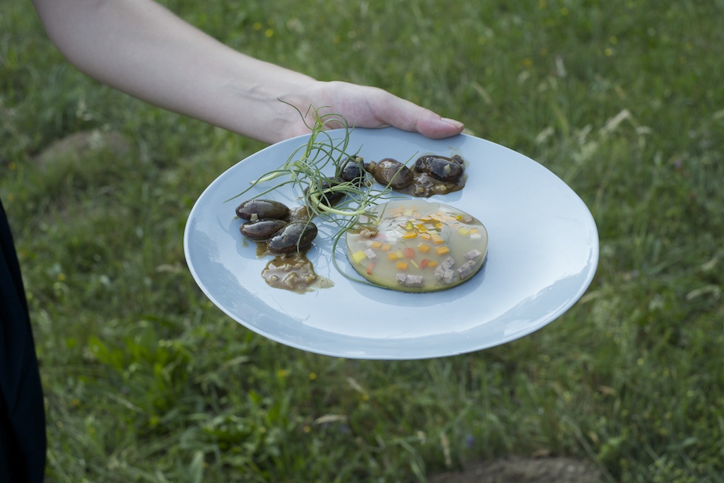 Der Tag selber konnte nicht schöner sein. Sonnenstrahlen, Fische aus der Gurk, Lamm aus dem Nachbartal. Gemüse aus der Region und feinste Kräuter, die wir auf dem Weg nach Kärnten einsammelten. Leo Calice verarbeitete diese wunderbaren Zutaten in sieben großartige Gänge.