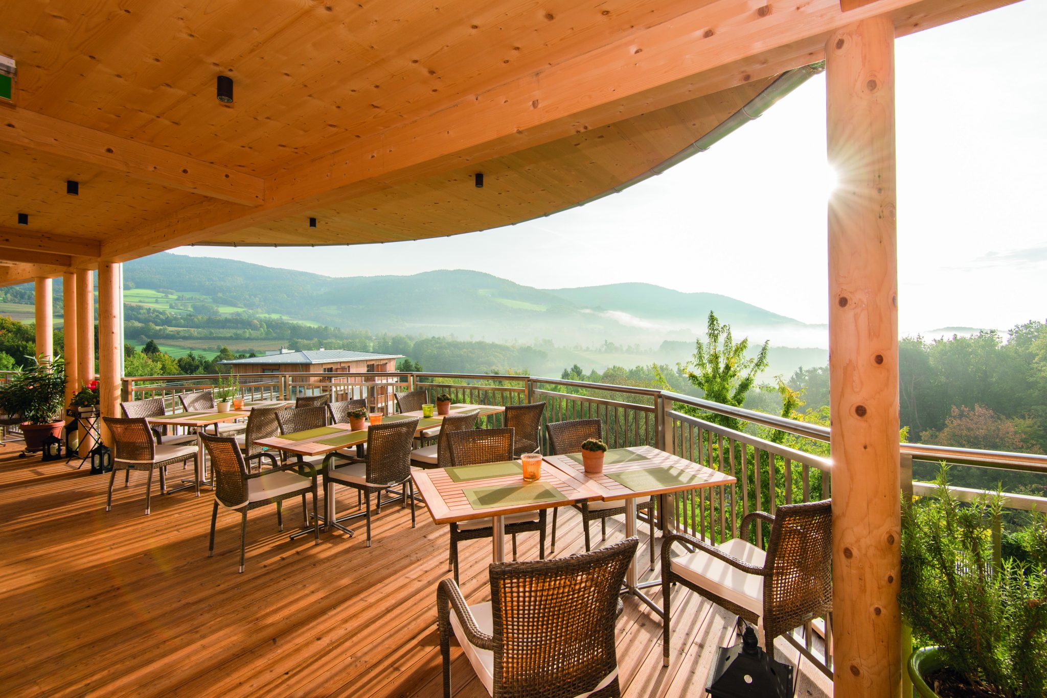 - Die Weitblickterrasse auf 650m Seehöhe.