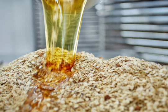 Neben dem bayerischen Hafer sind Sonnenblumenöl und Salz die einzigen Zutaten, die Barnhouse für das Hafer Krunchy verwendet. Das ist nicht nur ein gesünderes Frühstück, sondern erlaubt es dem Hersteller auch, regional zu produzieren. Nicht nur die Flocken des Süßgrases Hafer gelangen in das Müsli, zur Süßung wird Hafersirup verwendet.