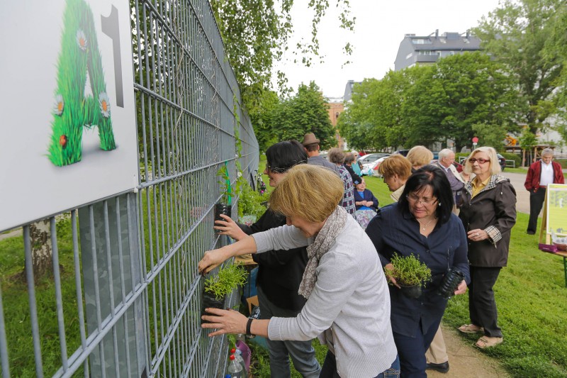 Die Bewohner des Arsenals und das ansässige Unternehmen A1 haben sich entschlossen, ihren Zaun zu einer vertikalen Grünfläche umzuwandeln. Kräuter und Erdbeertöpfe bilden einen hängenden Garten, der einem Zaun eine verbindende statt einer trennenden Funktion gibt.