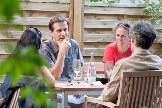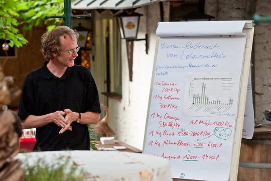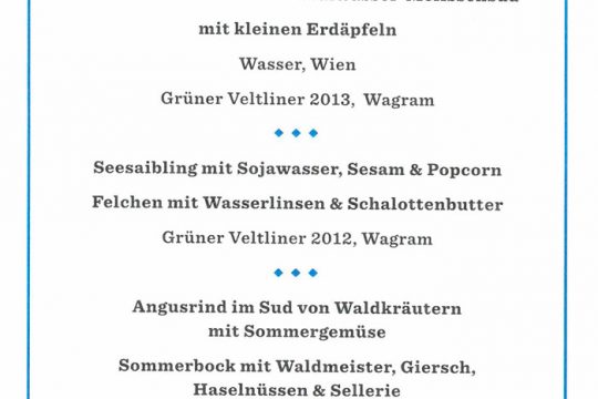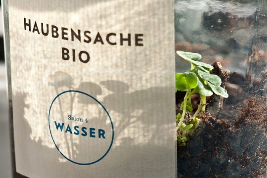 Ausgerichtet hatte den Abend die AMA Marketing gemeinsam mit dem FIBL (Forschungsinstitut für biologischen Landbau). Thema des vierten Abends unter dem Motto „Haubensache Bio“ war das Wasser. Zwischen den Gängen erzählten etwa Biofisch.at-Pionier Marc Mössmer über die Vorzüge einer wasserreichen Fischwirtschaft oder Thomas Lindenthal (FIBL) über die Wasserbilanz von saisonaler Bio-Küche. Biobauer Erich Stekovics hielt ein Plädoyer dafür, Paradeiser, speziell alte Sorten im Garten gar nicht zu gießen. Durch den Abend führte gekonnt souverän und lustvoll Kulinarik-Journalistin Katharina Seiser.