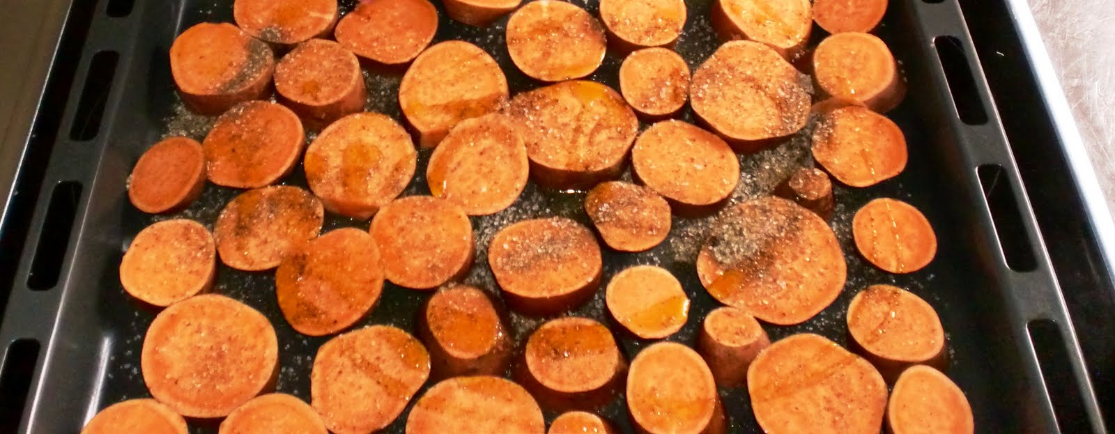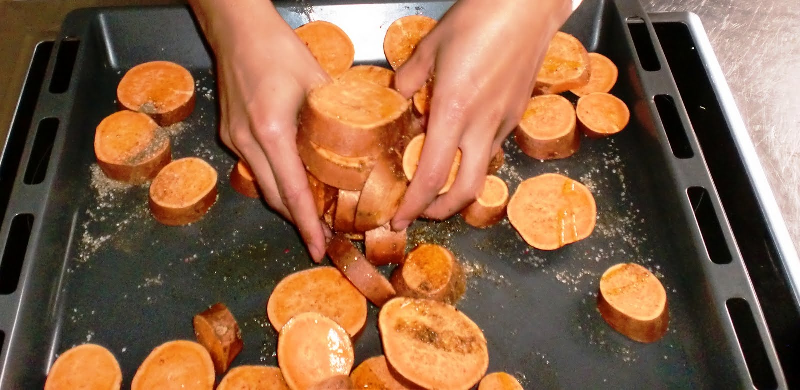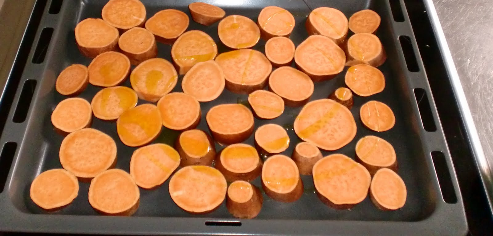 * 1 kg süsskartoffel, gewaschen und in 1 1/2 dicke scheiben geschnitten