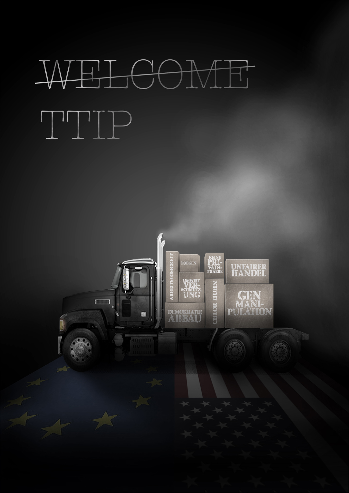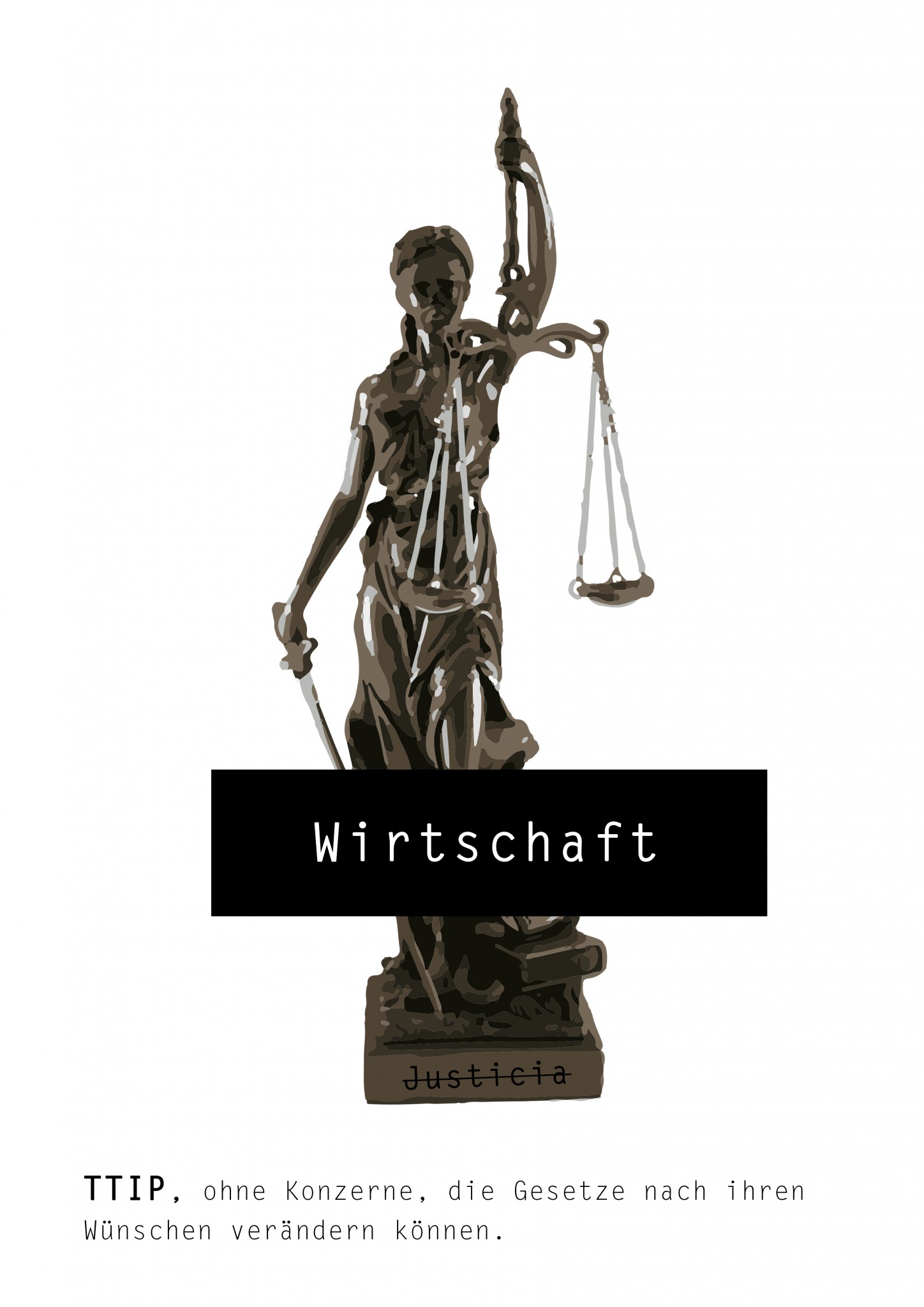 Nicht nur Werbung, sondern gerade gesellschafts- und klimapolitische Botschaften kann man sehr gut über Plakate vermitteln. Demonstrative Botschaften gilt es jetzt als Grafik gegen das geplante TTIP-Abkommen zwischen den USA und der EU zu entwerfen.