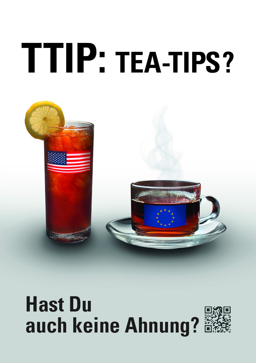 Poster sind seit jeher und noch immer ein gutes Mittel um schnelle Informationen zu vermitteln, Meinungen zu beeinflussen und sich in Gedächtnisse einzubrennen. Das Projekt Graphics go Politics ruft Grafiker und Künstler dazu auf, Plakate gegen TTIP zu designen.