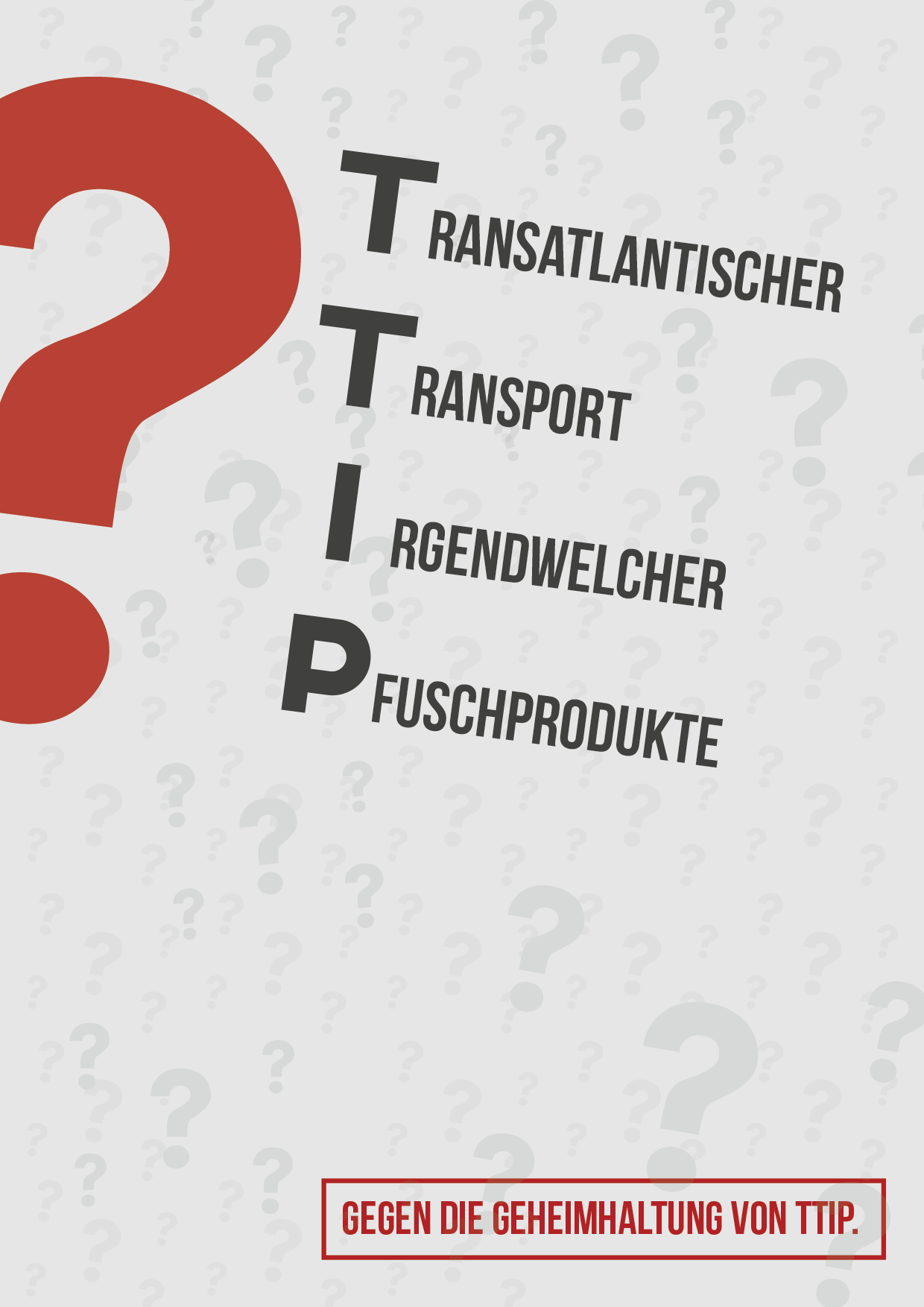Das Trans Atlantic Trade and Investment Partnership (TTIP) wird zur Zeit aufgrund der undurchsichtigen Hinterzimmer-Verhandlungen schon kritisiert, bevor man die eigentlichen Inhalte wirklich kennt. Was bisher bekannt ist, macht vielen Angst: die Aushebelung nationaler Gerichte durch Schiedsgerichte, wachsender Einfluss internationaler Konzerne, Marktüberschwemmung mit ausländischen Produkten, sinkende Produktstandards für Industrie-Lebensmittel. Horrorszenarien.