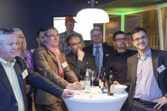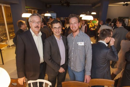 - Die Gastgeber Georg Schürmann (Geschäftsleiter Triodos Bank N.V. Deutschland), Marcel Eger (Stifter Viva con Agua) und Gerhard Eppler (Landesvorsitzender NABU Hessen)