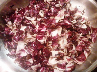 * 1 mittelgroße radiccio, strunk entfernen, fein würfeln und die blätter etwas auseinander zupfen