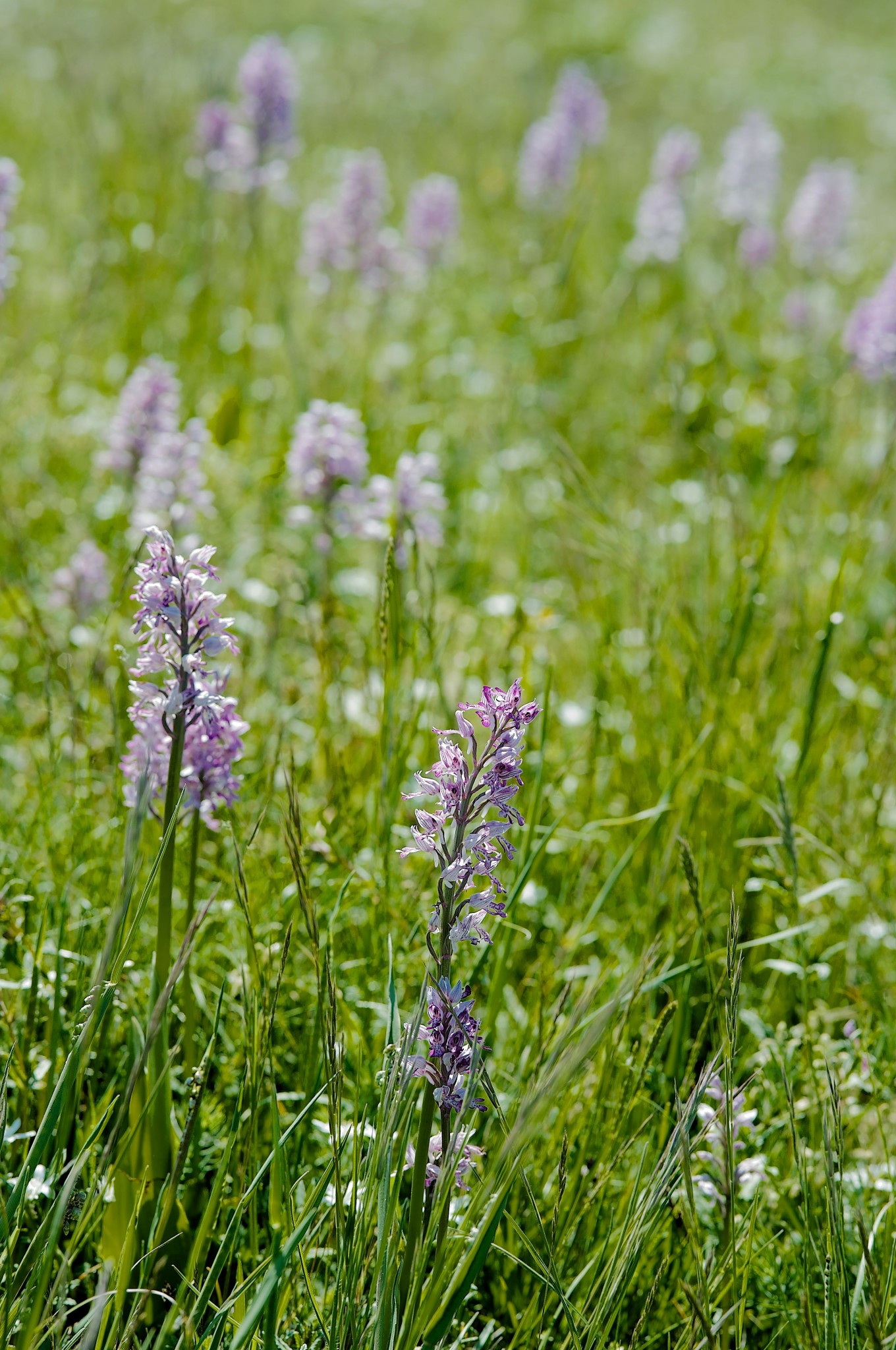 Nach etwa zehn Minuten Gehzeit vorbei am FKK Strand finde ich bereits die ersten beiden Orchideenarten. Dem Weg der Karte weiter folgend, kommt man dann zu großen Magerwiesen mit 100erten von Orchideen.