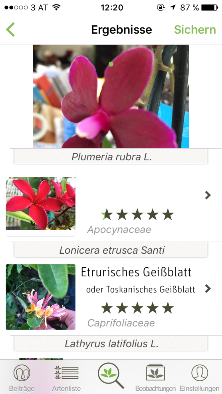 Von der fotografierten Orchidee ist unter den Ergebnissen keine Spur. Fotografiert man ein Blatt der Pflanze ist das Suchergebnis ebenfalls enttäuschend. Wenn die App mit einer ziemlich weit verbreiteten Zimmerpflanze schon keine brauchbaren Ergebnisse liefert, dann ist ihre Praxistauglichkeit „in freier Wildbahn“ wohl eher nicht besonders groß einzuschätzen. Schade eigentlich.