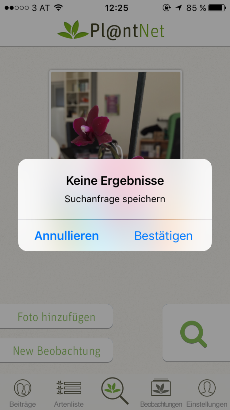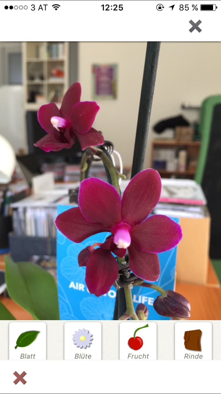 Um die auszuprobieren muss die Orchidee vom Schreibtisch herhalten. Dabei handelt es sich laut Etikett um eine Phalaenopsis. Die Blüte der Zierpflanze ist schnell fotografiert. Das Bild wird dann hochgeladen und angeblich sehr ähnliche Pflanzen werden als Ergebnis angezeigt. Das funktioniert allerdings erst nach mehreren Fehlversuchen.