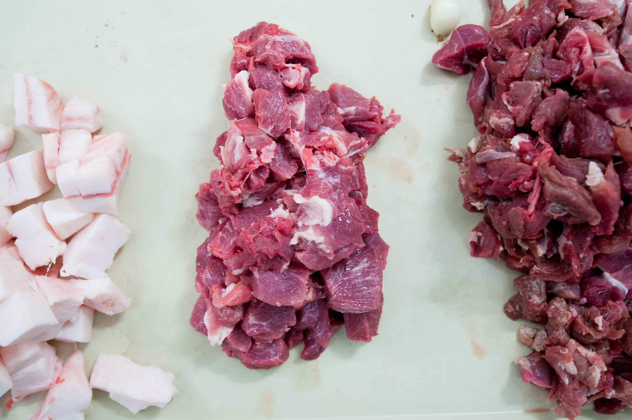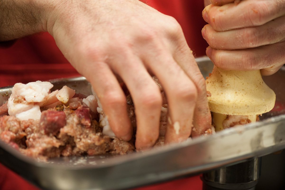 - Am Anfang steht das Zerkleinern des Fleisches. (Bild: Jürgen Schmücking)