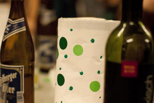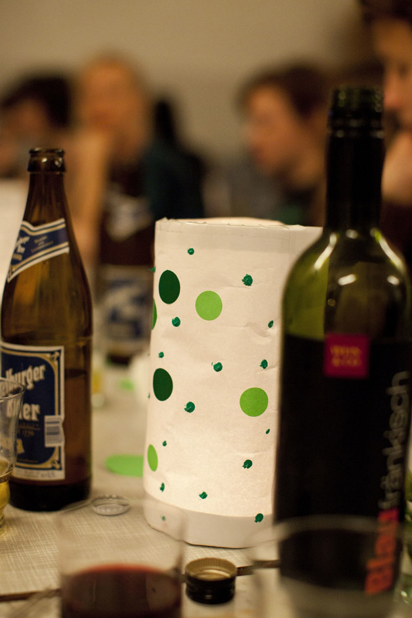 Es ist die Geschichte von der Grüne-Punkte-Krankheit. Es war eine Faschingsparty im Laderaum auf dem Wiener Badeschiff im Winter 2007. Meine gute Freundin March wusste nicht als was sie sich verkleiden sollte, eines jedoch wusste sie: Ihre absolute Lieblingsfarbe war Grün, sie besaß viele grüne Kleidungsstücke, grüne Haarschleifen und grüne Schuhe. Ausserdem hatte sie zuhause größere Mengen grüne Klebefolie herumliegen und so beschloss sie, sich als „Grüne-Punkte-Krankheit“ zu verkleiden, schnitt in liebevoller Kleinarbeit Punkte aus und beklebte sich von oben bis unten damit. Auf dem äusserst rauschenden Fest sorgte sie zusätzlich dafür, dass alle Menschen in ihrer Umgebung etwas von den Punkten abbekamen. Viele wurden infiziert an diesem Abend und bei Betrachtung der Bilder dieser Feier, gab es schier keines, das nicht gepunktet war.