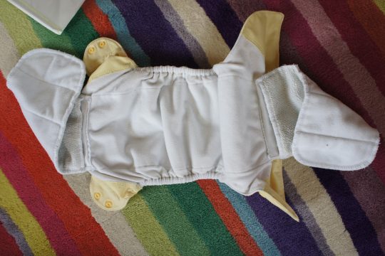 Preisgekrönte Höschenwindel aus 80-%-Bambusviskosefrottee-20-%-Polyester-Mix mit Saugkern aus Mikrofaser. Weich und angenehm, in alle Richtungen dehnbar, relativ klein, aber sehr saugstark. Inklusive Einlage nachttauglich. Kletter zum Verschließen, das breite Gegenklettband macht die Bauchseite der Windel leider recht steif. Mitwachsend, also das ganze Wickelalter verwendbar. Eher langsam trocknend. Made in UK.