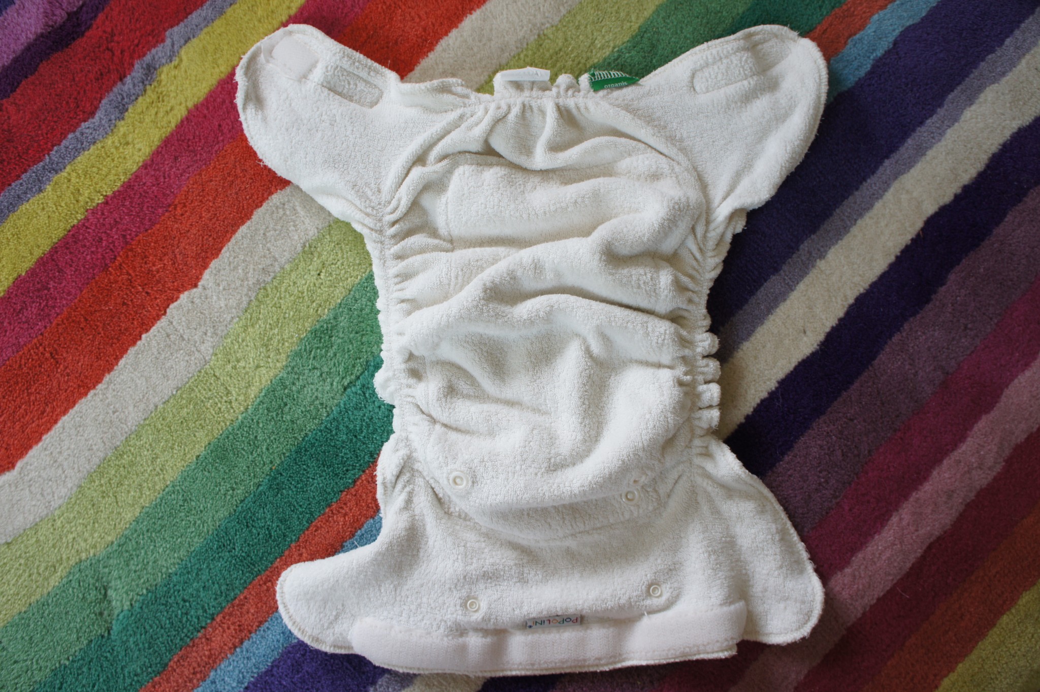 Preisgekrönte Höschenwindel aus 80-%-Bambusviskosefrottee-20-%-Polyester-Mix mit Saugkern aus Mikrofaser. Weich und angenehm, in alle Richtungen dehnbar, relativ klein, aber sehr saugstark. Inklusive Einlage nachttauglich. Kletter zum Verschließen, das breite Gegenklettband macht die Bauchseite der Windel leider recht steif. Mitwachsend, also das ganze Wickelalter verwendbar. Eher langsam trocknend. Made in UK.