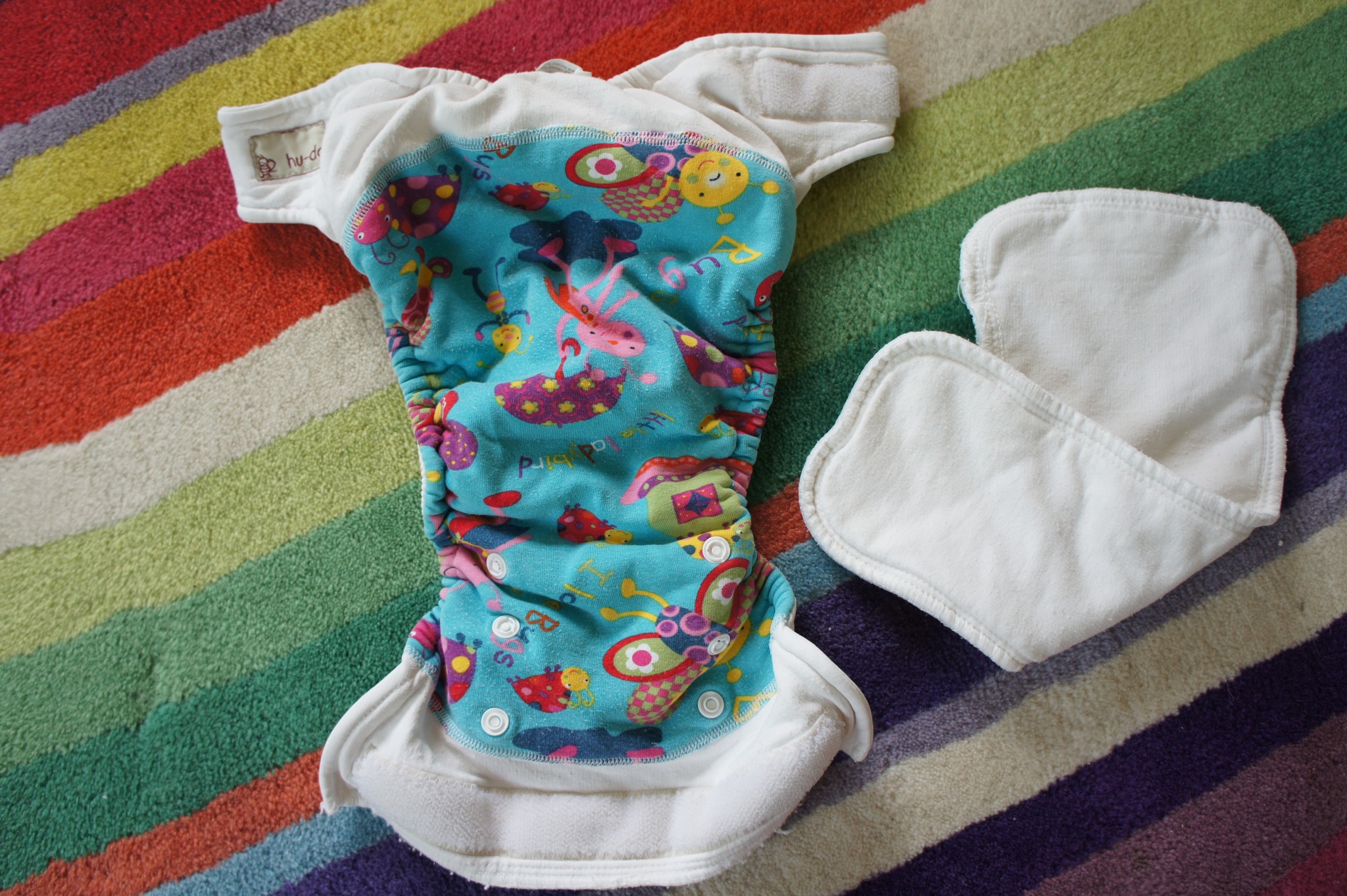 Zwei-Komponenten-Windeln haben innen etwas Saugendes, da gibt’s von der einfachen Mullwindel über Einlagen bis zur High-Tech-Bambusviskose-mit-Mikrofaser-Saugkern-Höschenwindel alles! Als Materialien kommen Baumwolle, Bambus oder Hanf (Natur pur, als Frottee extra saugfähig) oder Kunstfasern (trocknen schneller, saugen teilweise besser, eine Stay-dry-Oberfläche aus Polyester hält herrlich trocken) zum Einsatz. Das saugende Innere wandert nach jedem Gebrauch in den Windelkübel, nach maximal drei Tagen in die Waschmaschine.