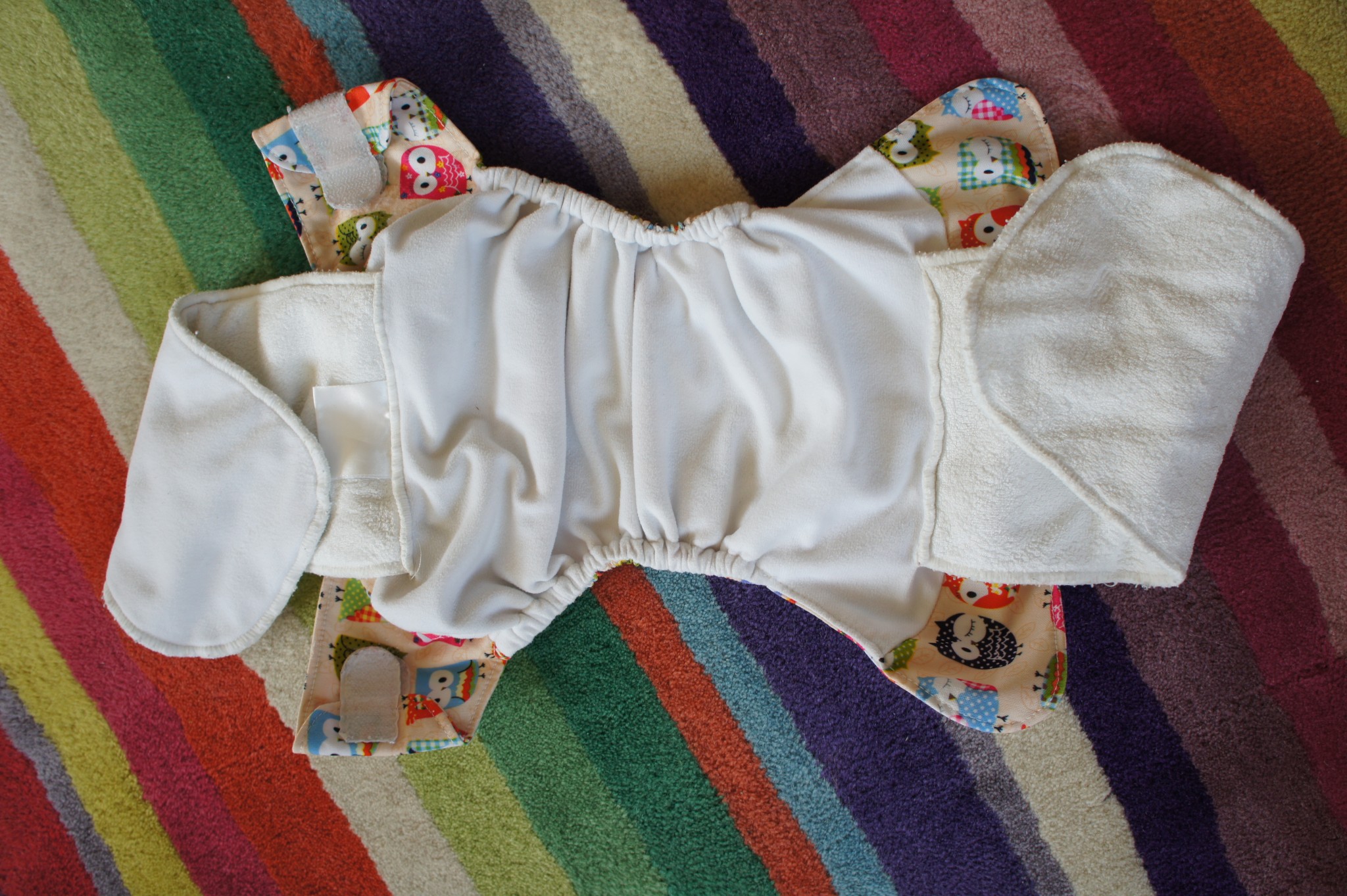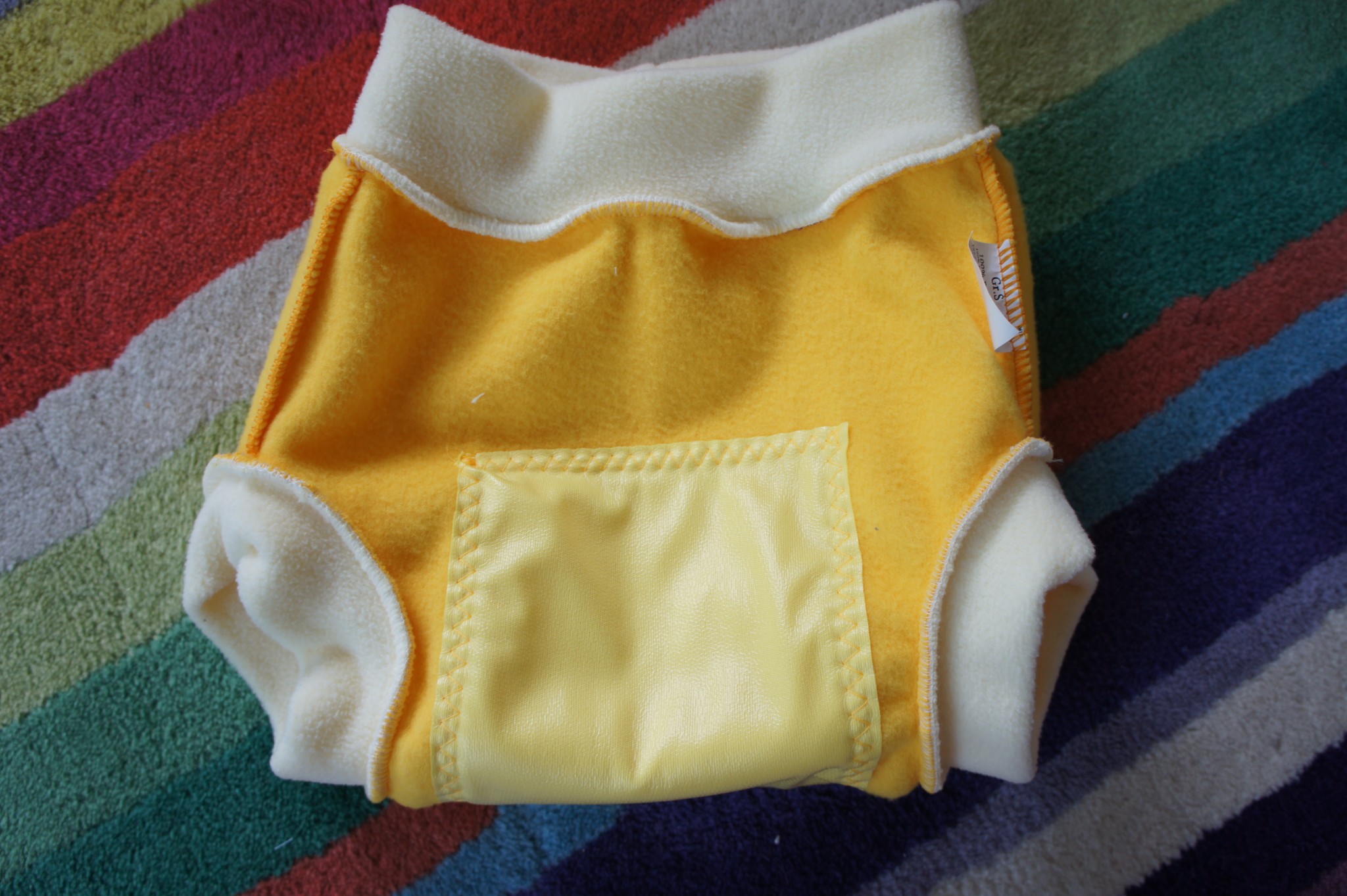 Darüber kommt eine Überhose, meist aus mit Polyurethan beschichtetem Polyester (PUL), mitunter aus Fleece oder auch aus Wolle, entweder als Schlupfhose oder mit Klettverschluss oder Druckknopf zu verschließen wie herkömmliche Windeln. Die PUL-Überhosen sind dicht und dabei atmungsaktiv und müssen nur bei grober Verschmutzung, also selten, gewaschen werden. Wollüberhosen sind wiederum pure Natur, durch das Lanolin flüssigkeitsabweisend (aber nicht unendlich), und halten das Baby, auch wenn sie feucht werden, schön warm.