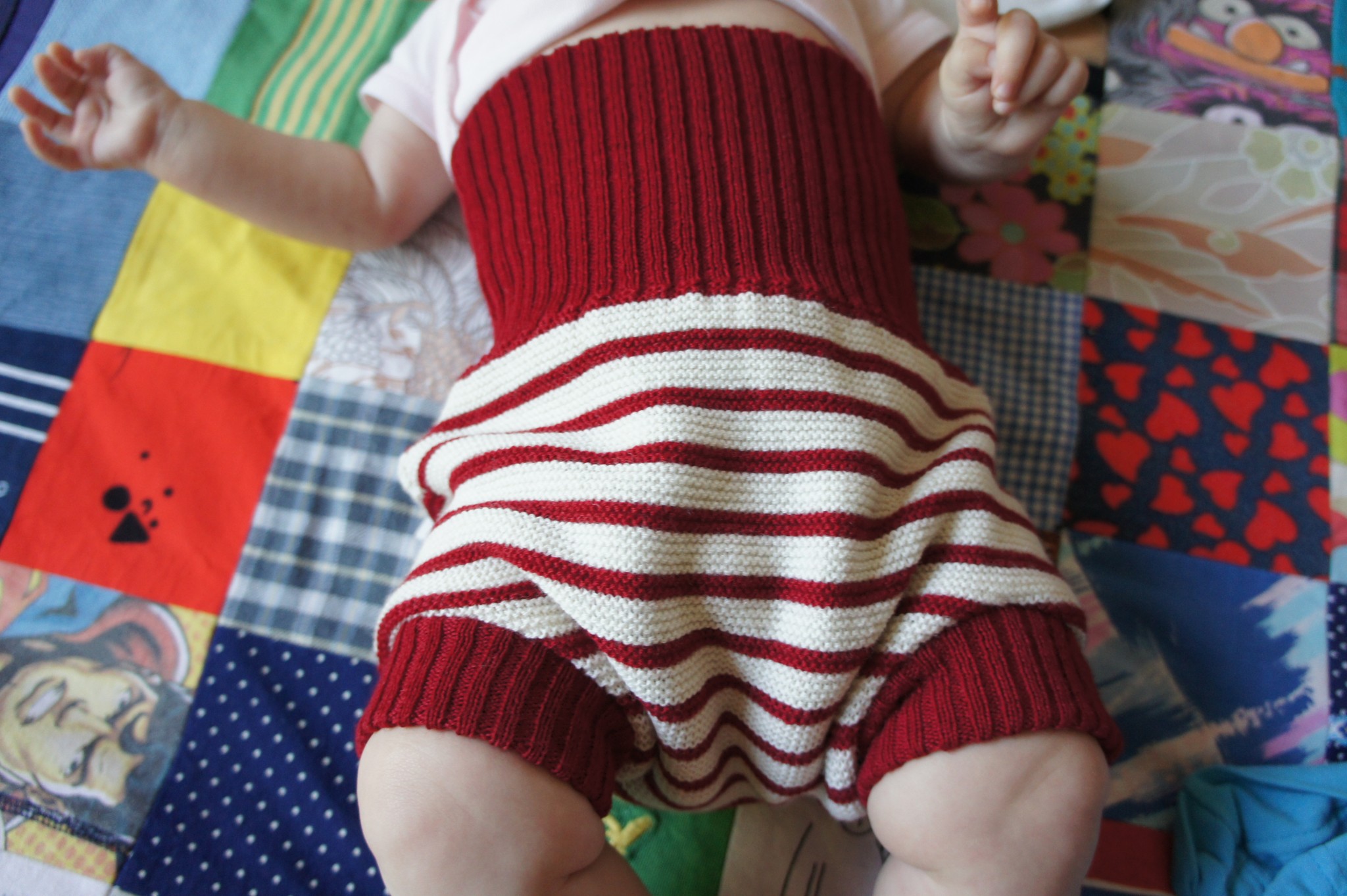 Gestrickte Schlupfüberhose aus Merinowolle aus kontrolliert biologischer Haltung. Abgesehen davon, dass ich Schlupfhosen zumindest tagsüber weniger praktisch finde, sehr weich und angenehm zu tragen. Macht einen sehr großen Popsch. Gute Nacht-Überhose! Nicht mitwachsend.