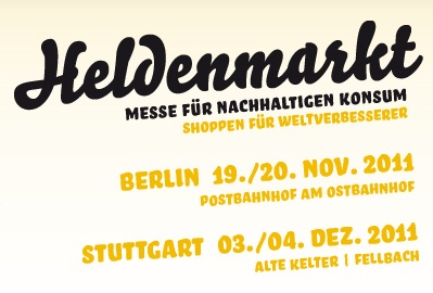 Am 19. und 20. November 2011 findet der Heldenmarkt in Berlin statt, eine Messe für nachhaltigen Konsum. Und schon vormerken: Den Heldenmarkt gibt es neu auch in Stuttgart am 3.-4. ...