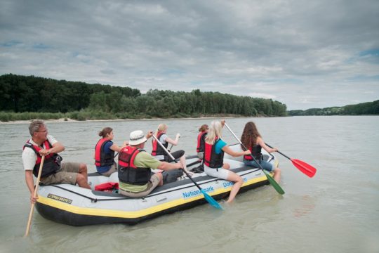 Lehrreich und lustig: Biorama-Leser auf Paddeltour im Nationalpark Donau-Auen. Hier, östlich von Wien, darf die Donau noch Fluss sein. Nur kurz vor Wien, in der Wachau, fließt sie sonst ...