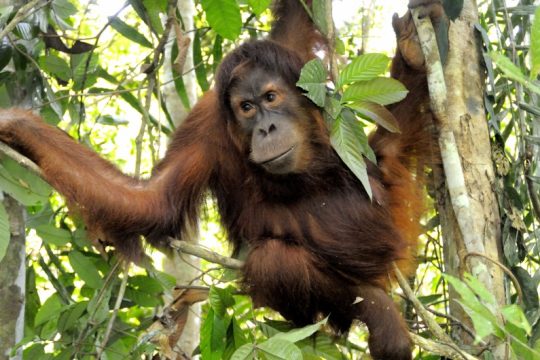 Die Orang-Utans sind die einzigen heute noch lebenden großen Menschenaffen in Asien...
