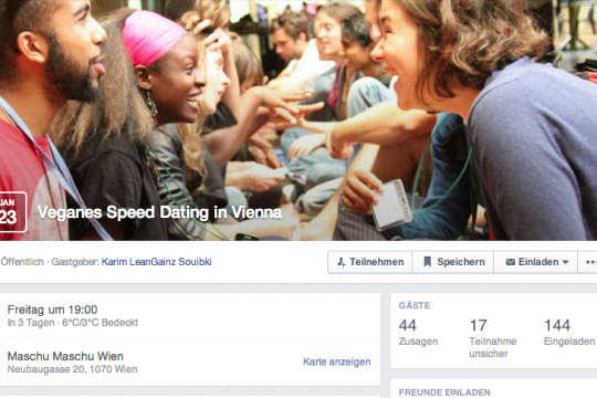 Du bist single, vegan und schon am Verzweifeln? Potenzielle vegane Männchen und Weibchen sind in der Großstadt schwer zu finden? Am Freitag gibt es in Wien die Mö ...
