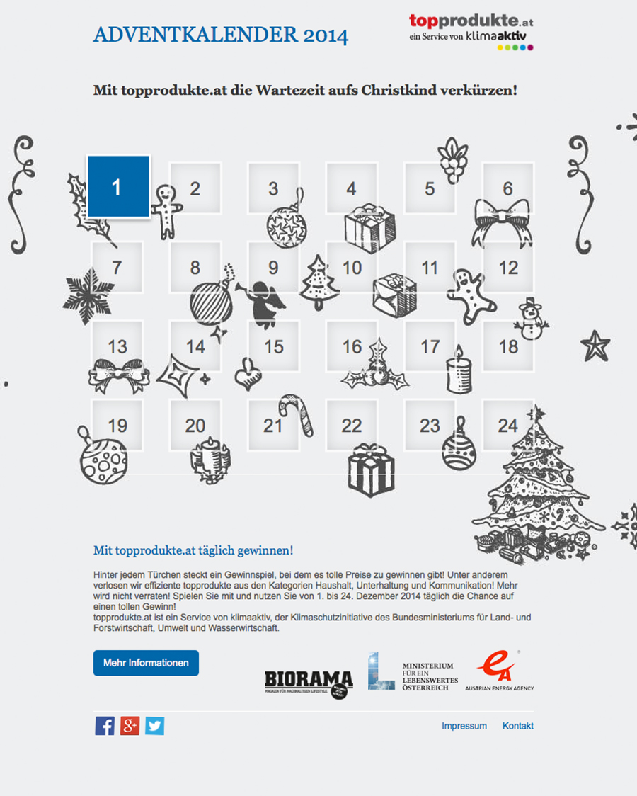 Einfach Türchen öffnen, Gewinnfrage beantworten und mit etwas Glück gewinnen. Verlost werden unter anderem Preise aus den topprodukte.at Kategorien Unterhaltung, Haushalt und Kommunikation. Alle weiteren Informationen gibt’s auf topprodukte.at.