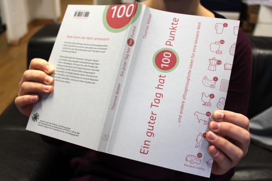 Das Grundkonzept funktioniert folgendermaßen: Jede unserer Aktivitäten – vom Trinken des morgendlichen Kaffees, über die Fahrt zum Arbeitsplatz, bis hin zum abendlichen Fernsehen – hat ein Punkteäquivalent, das auf den entsprechenden CO2-Ausstoß zurück geht. Und 100 Punkte haben wir pro Tag zur Verfügung. Liegen wir an einem Tag über diesen 100 Punkten, dann haben wir mehr Ressourcen verbraucht, als uns eigentlich zustehen. Doch: Thomas Weber erhebt nicht den moralisierenden Zeigefinger, sondern offeriert Möglichkeiten und präsentiert Initiativen, die das Alltagsleben bereichern und gleichzeitig Ressourcen schonen. „Iss bedrohte Tiere“ heißt es da, oder „Miete eine Waschmaschine“ und „Werde Mundräube“ – allesamt als Anregung und nicht als Anordnung zu verstehen. Was noch dazu kommt, ist die Tatsache, dass viele der Vorschläge einfach Spaß machen und gut tun.